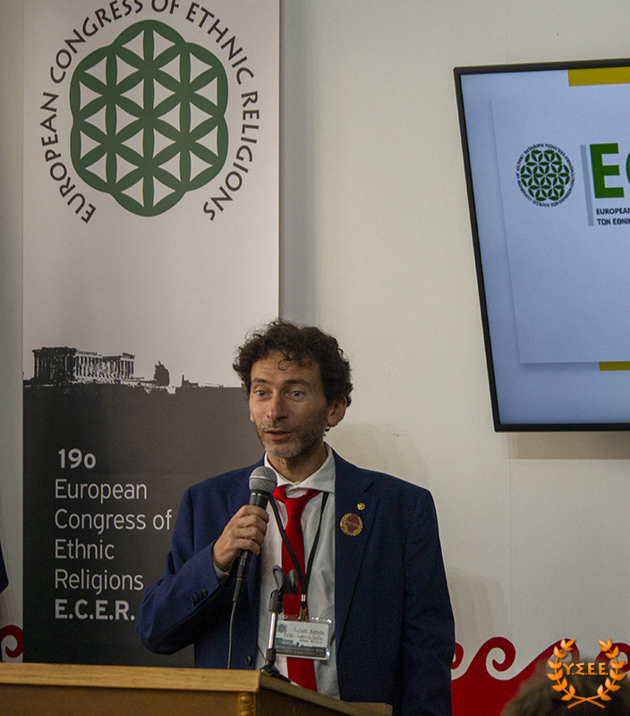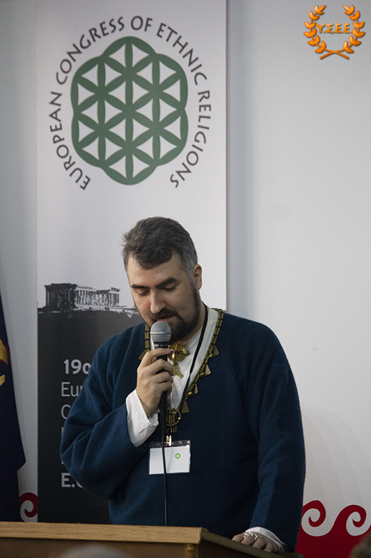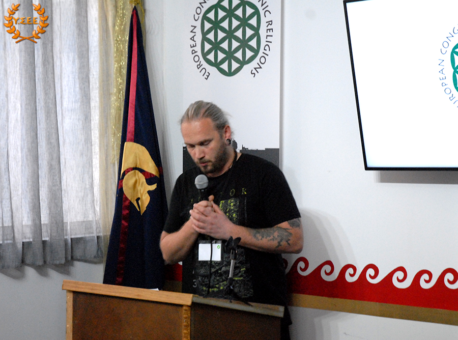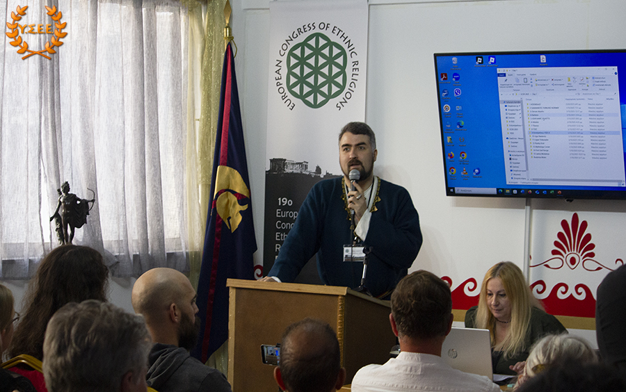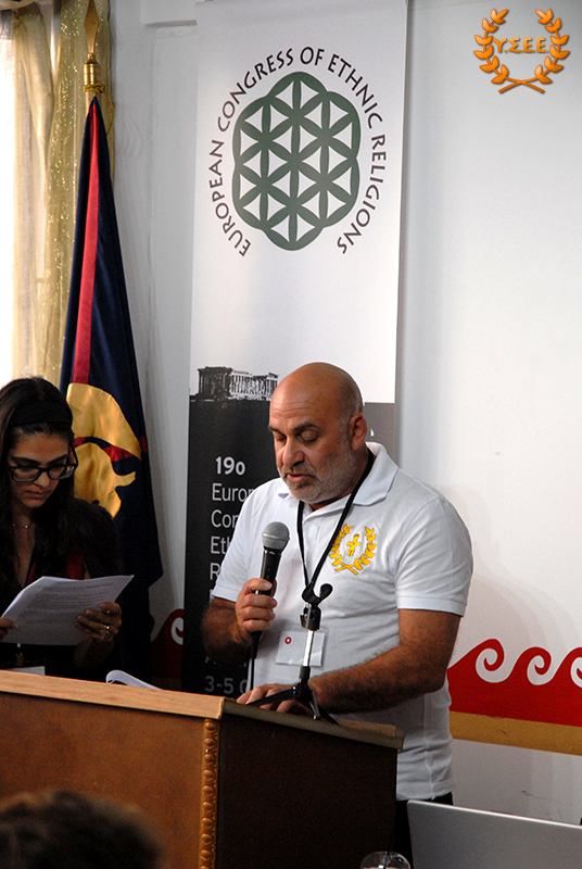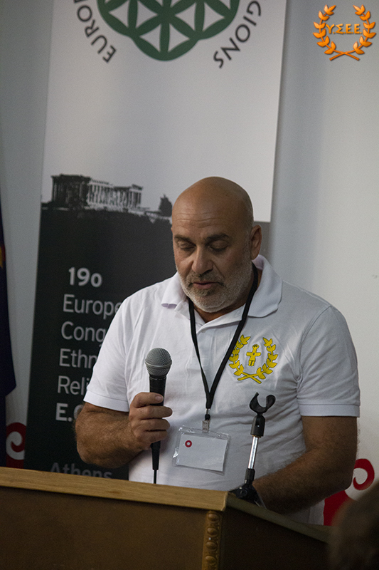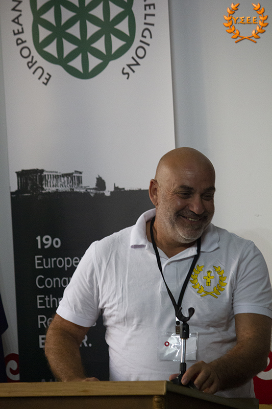 Evangelos Kiousis, priest of the Hellenic Ethnic Religion, co-founder of the House of Ethnic Hellenes Thyrsos, and member of the YSEE, stated that it is important for the organizations to meet more frequently and emphasized that: «We must define ourselves, and work hard at it, in an even more understandable language. As long as we use the tools from the same toolbox that the System provides us, in the end, we will build only a cell for ourselves and lock the door.»