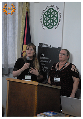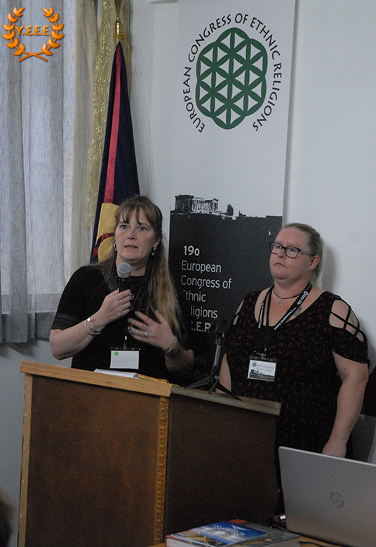 Camilla Winther Bang and Monika Ylfa Steensdatter from the Danish organization Forn Siðr deliver a welcome address at the congress. Their contribution is very important and gave the participants an insight of their tradition and their achievements towards the way of legal recognition in their country.
