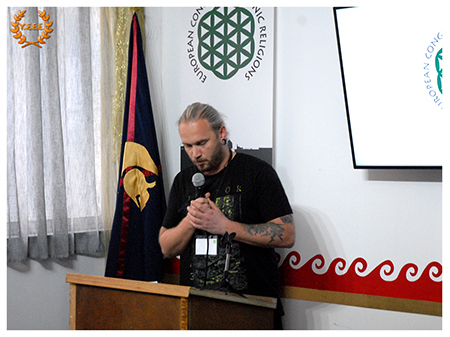 Audun Mehl from Forn Sed Norge (Norway) present the organization: «The main purpose of Forn Sed Norge is to continue old traditions and customs, as well as provide insight into and interest in Norse religion, folk beliefs and Norse cultural heritage. Since its inception, Forn Sed Norge has been both knowledge- and experience-based, and these two constitute the bedrock to this day. The faith community rests on the belief that the old ways of doing things are not a reconstruction, but have survived through folk beliefs, traditions, fairy tales, ballads and various stories. They have functioned as a vital undercurrent for the last thousand years and are now showing up on the surface again as inspiration and taking on many different forms.»