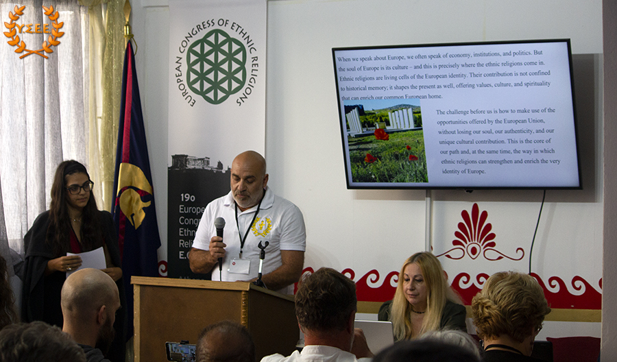 George Constantinou, president of the YSEE in Cyprus and priest of the Hellenic Ethnic Religion, said that when we talk about Europe, we often talk about economics, institutions, and politics. However, the soul of Europe is its culture – and that is where ethnic religions come in.